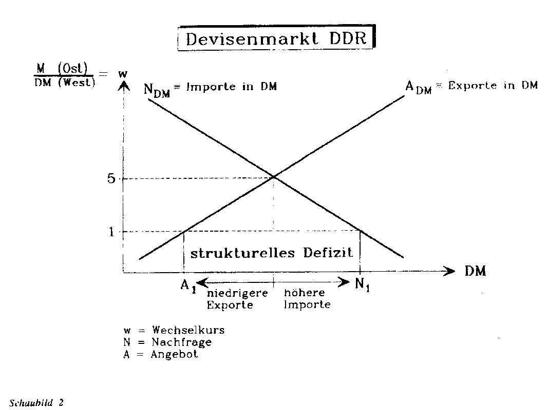 der DDR-Devisenmarkt wäre bei einem Wechseikurs von 1:5 im Gleichgewicht, d. h. die