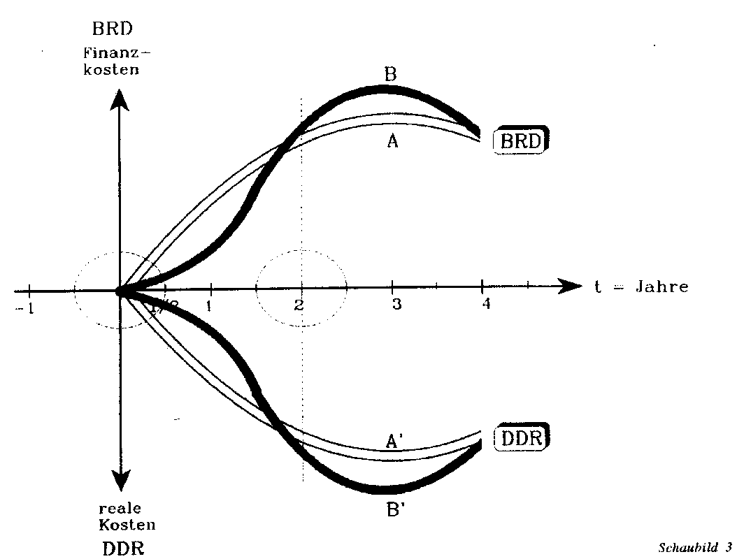 Die skizzierten Kostenverlaufe sind allein von der Einführung der Währungsunion determiniert und nicht vom Wahltag einer gesamtdeutschen Wahl bestimmt. Mit anderen Worten, die reale Entwicklung ist in ihrer Qualität vorhersehbar, nur in ihrem Umfang nicht genau quantifizierbar. Diese Entwicklung ist also in jedem Falle zu erwarten, unabhängig davon, wann der Wahltermin stattfinden wird.